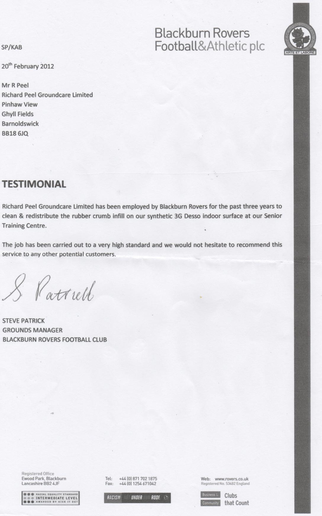 Nov 2012: Testimonial from Blackburn Rovers FC -